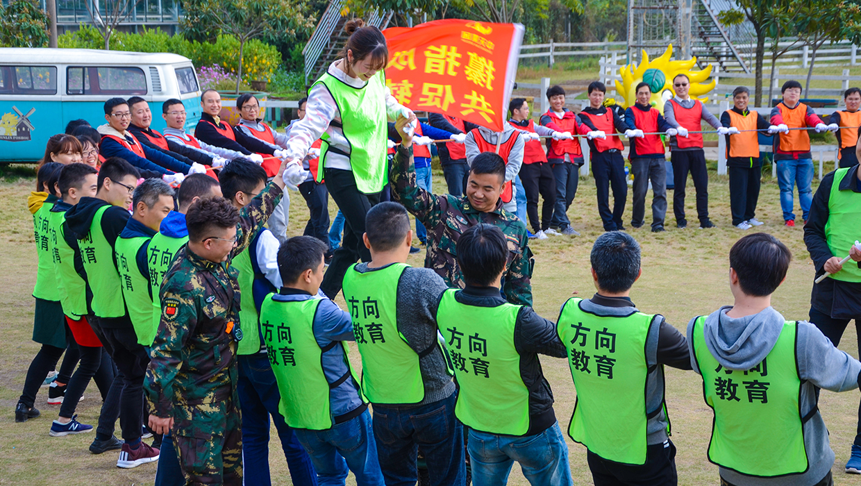 團建中,在經歷一次失敗后,全體新員工終于成功翻越畢業墻