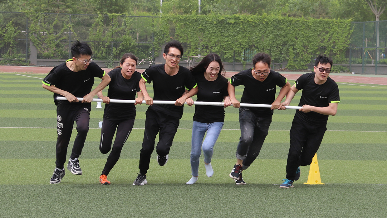 在北京集團創立22周年運動會上,全體成員共同搖晃動力繩圈2018下